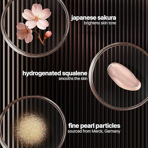 Skincare Ingredients : Features hyaluronic acid for hydration, Japanese Sakura for brightening, and hydrogenated squalene for easy absorption.