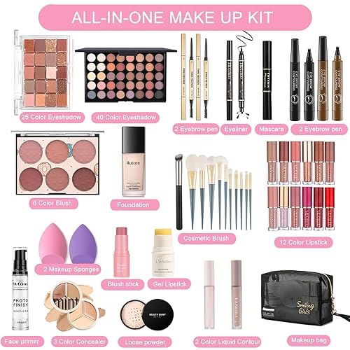 Makeup Kit for Women Full Kit: Looking for the perfect makeup set to impress makeup beginner? Ruicen make up set matched for beginners by professional make-up artists which is the greatest starter make up kit for beginners and easy to apply. Sleek and neat containing everything you need to make a full face look