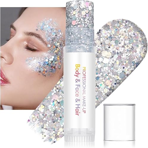 Adhesive Easy to use: our glitter stick is with good adhesion, no glitter glue required. Simply slide on it, easy and fast, easy to control the amount applied. Apply sparingly for a subtle look or apply more coats for an intense dramatic effect. Ideal face and hair glitter for children. The glitter flakes face gemstones stick well and stay all day and night.