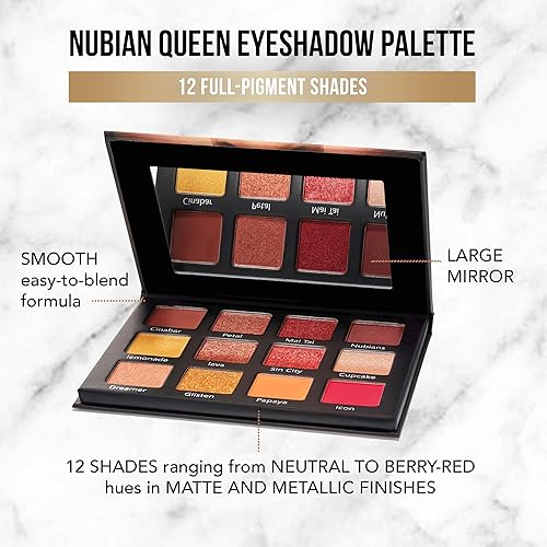 Glamazon Eyeshadow Palette, Rebel Rose, 12 Shades, Versatile Eye Makeup Set for Stunning Day-to-Night Looks, Red Tones(Nubian Queen)