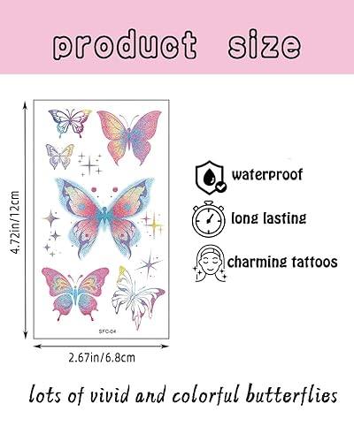 Glitter Temporary Tattoos for Kids: You will get 30 Sheets of glitter tattoos for in over 50 styles with a variety of butterfly. The glitter tattoo kit is popular with girls of all ages. The butterfly stickers provide lots of fun for kids and adults at parties of all kinds