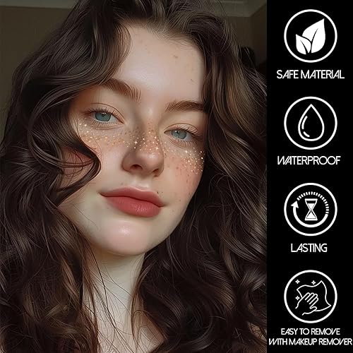 The cutest little sparkly star freckles adds a fun subtle sparkle to their outfits without looking cheesy.The glitter touch elevates their looks and adds fun to their makeup.They look good without any makeup on, or on top of makeup,these are so fun and cute for both adult and kids faces