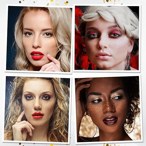 【PREMIUM QUALITY】 Our glitter freckles are temporary tattoos, fake freckles crafted with skin-safe, premium materials for all skin types. These face glitter patches provide gentle, hypoallergenic wear, eliminating skin reactions. Ideal glitter freckles for women daily use. Enjoy sparkling freckles and face tattoos for women with our gold freckles temporary face tattoos. The glitter freckles are festival essentials, bachelorette party accessories, stuff for teen girls as festival accessories.