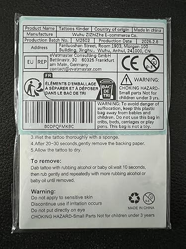 Easy Application: 1. Pick your favorite design, cut it out, and place it face down on clean + dry skin 2. Grab a damp paper towel and lightly pat the tattoo paper for at least 15 seconds, Remove the tattoo paper 3. It can also be easily removed with olive oil or soap.