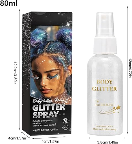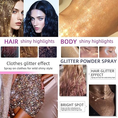 Long-Lasting Cosmetic Glitter: Achieve lasting brilliance with this quick-dry glitter spray, that features strong-glitter adhesion, and maintains all-day shine in a lightweight, non-sticky formula, eliminating the need for repeated applications