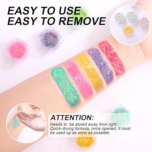 Skin-Friendly and Easy to Remove This body glitter rinses off easily with water or makeup remover, no sticky.