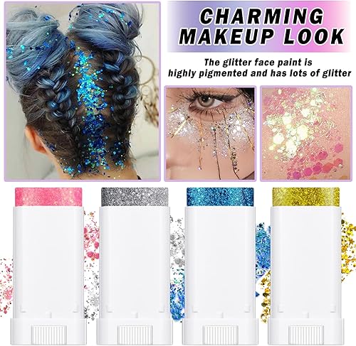 【Widely Used】This holographic glitter stick adds special brilliance and sparkle to your makeup, perfect for parties, weddings,Halloween, Christmas, birthdays, carnival makeup use, make you the center of attention.