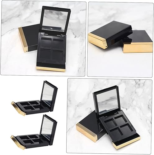 Gold-Trimmed Eyeshadow Palette Case 2pcs Cosmetic Storage Boxes for Makeup Portable Eye Shadow Container 4 Color Compartments for Travel DIY Makeup