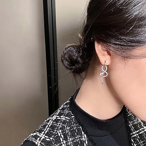 Gothic Crystal Snake Drop Earrings Silver Serpent Earrings Punk Snake Hoop Earrings Unusual Halloween Earrings Jewelry for Women