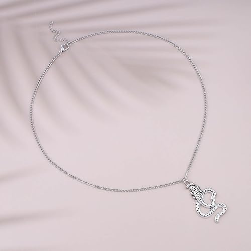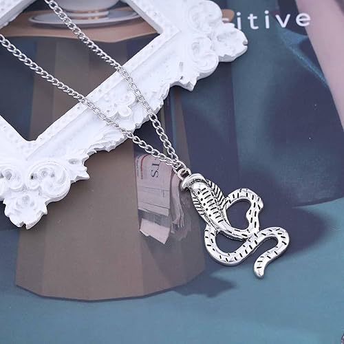 Gothic Snake Pendant Necklace Gold Snake Necklace Vintage Serpent Pendant Necklace Punk Snake King Cobra Necklace Chain Goth Dark Jewelry for Women and Girls(Silver)
