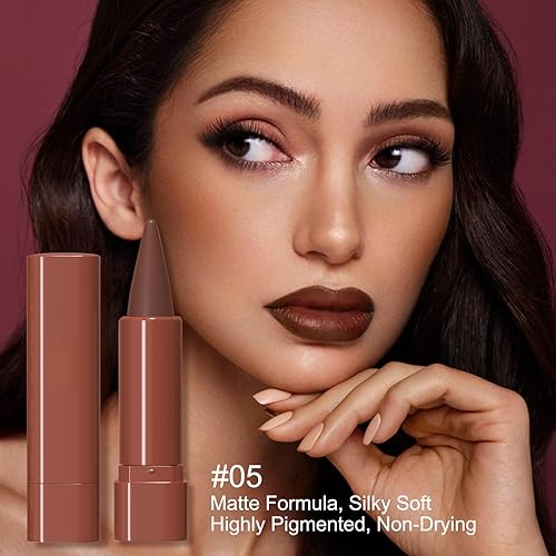 【Highly Pigmented Matte Lipstick & Liner Duo】Choose from 5 versatile shades—Brown, Red Brown, Sienna, Maroon, Wine—formulated to flatter a range of skin tones. This dual-action lip liner combines precise lip lining and rich matte color, creating seamless gradients or bold, full coverage for timeless, sophisticated looks.
