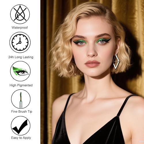 Green Glitter Liquid Eyeliner, Shimmer Eyeliner, Long-Lasting Smudge-Proof, Waterproof, Quick-Dry, High Pigment Sparkly Glitter Eye Liner with Ultra-Fine Tip for Parties Festivals