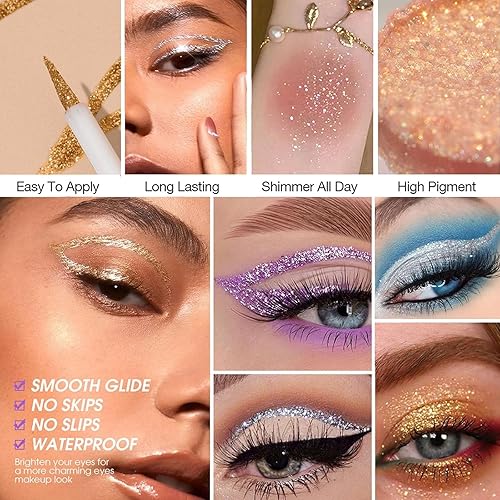 [For Various Occasions]: Sparkly eyeliner is perfect for music festivals, romantic dates, holiday parties, Christmas or Halloween-themed makeup. Whether used alone or layered with other eyeshadows, it can create a unique charm