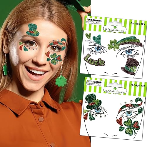 Comment on "Green Shamrock Face Temporary Tattoos St. Patrick's Day Face Tattoos, Green Glitter Clover Leaf Face Jewels Tattoo Stickers for Adult Kids Lucky Irish Day Eye Makeup Kit Decor 2 Sheets(Shamrock 1)"