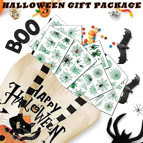 Grow in Dack Halloween Spider Web Temporary Tattoos for kids Adults, Realistic Spider Fake Tattoo Stickers Halloween Cosplay Party Favors, Halloween Gifts Goodie Bag Fillers(Luminous Spider)