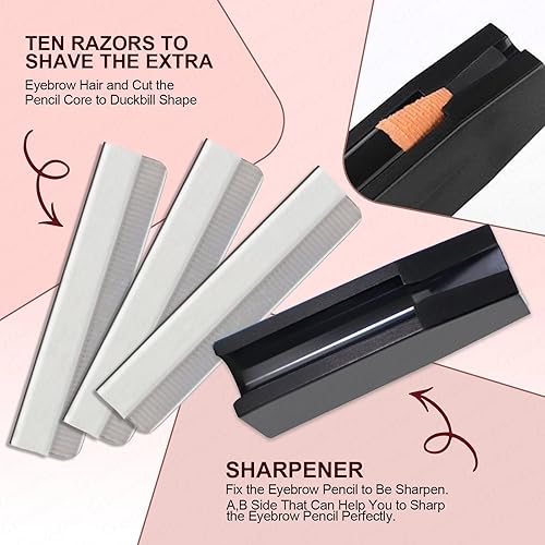 Complete Mapping Tools: Comes with 10 razors for trimming, a sharpener to maintain pencils, and creamy textured brow paste for highlighting contours around brows and lips.