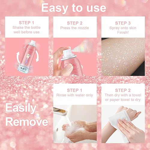 Glitter Body Spray - The delicate and light glitter shimmer Powder easily to spray on hair, eyes, face, body, leg and clothing with shimmer makeup effect. Perfect to enhance skin gloss, unlock and set your shimmer makeup.