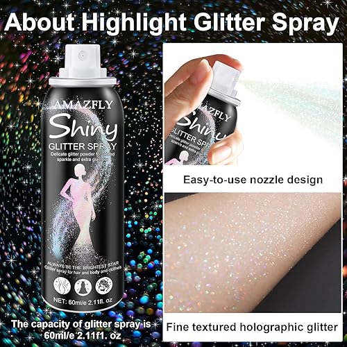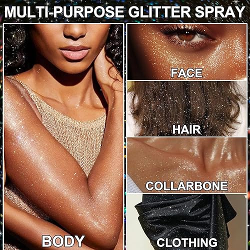【Hair and Body Glitter Spray】: A lightweight, non-sticky formula that adds multi-dimensional shimmer to any look, leaving hair and body sparkly and shiny.