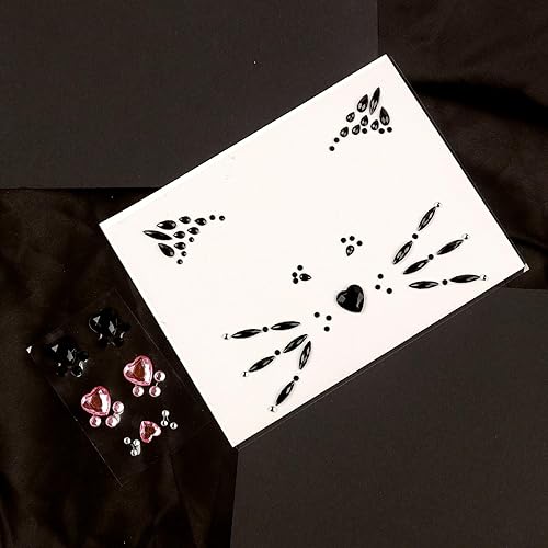 DIY: Each cat face rhinestones sticker is brightly colored, which can highlight your facial features or add a touch of charm to your body. Gemstones come in various shapes and sizes, allowing you to create infinite combinations and designs. Let your imagination run wild, showcase your unique style with our Halloween face body gemstone rhinestone stickers