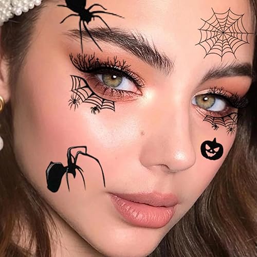 Halloween Face Tattoos: You will get 6 pair eyeshadow stickers and 2 sheets spider web tattoos for Halloween party.