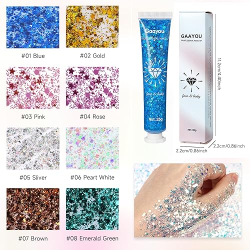 【Multiple Colors Options】: Choose among our rich selection of 8 colors: blue, gold, pink, rose red, silver, pearl white, brown and green. Perfect for adding a colorful sparkle to your halloween face glitter looks.