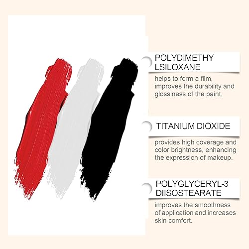 Complete Makeup Solution: Featuring white with a cream-to-powder matte finish alongside black and red in an oil-based cream texture, this full set is ideal for daily use or festive designs with three brushes ensuring seamless blending and creativity