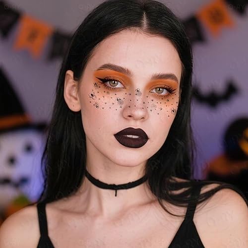 Halloween Face Tattoo Stickers Mix Theme Temporary Tattoo Decals Pumpkin Spider Web Ghost Bat Face Eye Shadow Makeup Stickers for Women Men Halloween Masquerade Carnival Accessories(Spiders)
