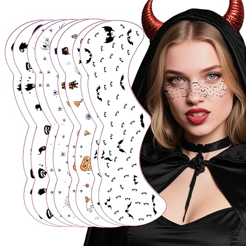 Product Includes: Our product comes with 8 Halloween face tattoo stickers to help you create a unique Halloween look and unleash your creativity. These stickers are the perfect choice for Halloween party eye makeup.
