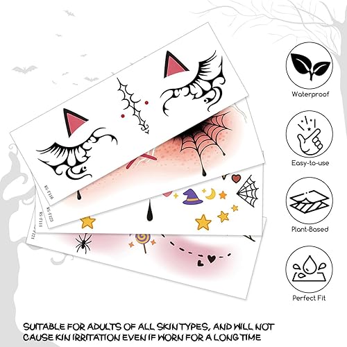 - Made from high-quality materials, our Halloween Face Tattoos are skin-friendly and easy to apply. Just peel, stick, and let the magic happen—no special skills required!