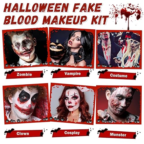 【Wide Application】Fake blood makeup kit is suitable for Halloween vampire zombie role play,sfx makeup,clown makeup,horror movies and other occasions,bringing you a realistic atmosphere experience