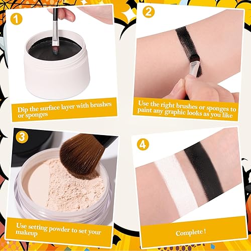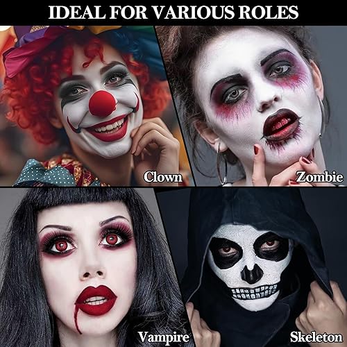 Widely Used On Various Occasions - The white and black face paint are suitable for painting beginners, performers, painters, and makeup artists. Perfect for Halloween parties, special effects shows, masquerade balls, school carnivals, sporting events, film shoots, fun theme parties, clubs, haunted houses, stage performances, etc.. You are going to shock your people with our Halloween make up for adults and kids.