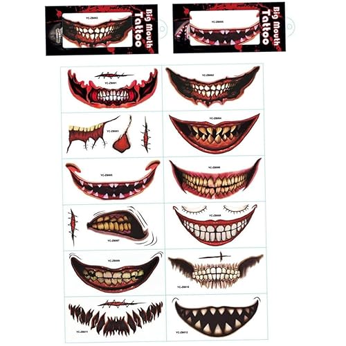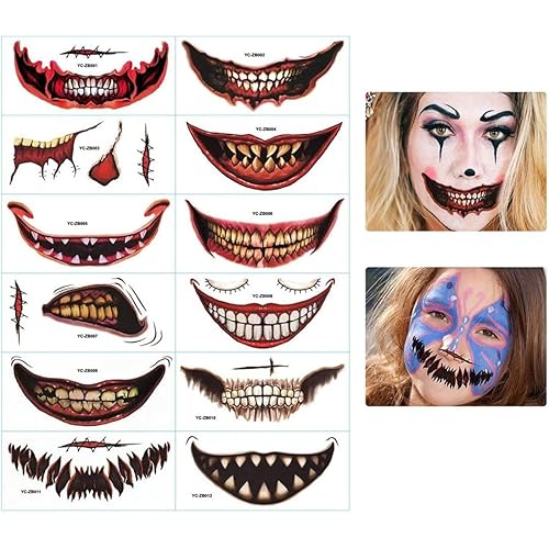 Comment on "Halloween Scar Tattoos, Halloween Face Tattoos 12Pcs Temporary Face Clown Horror Mouth Tattoo Stickers Temporary Scar Decals, Stickers"