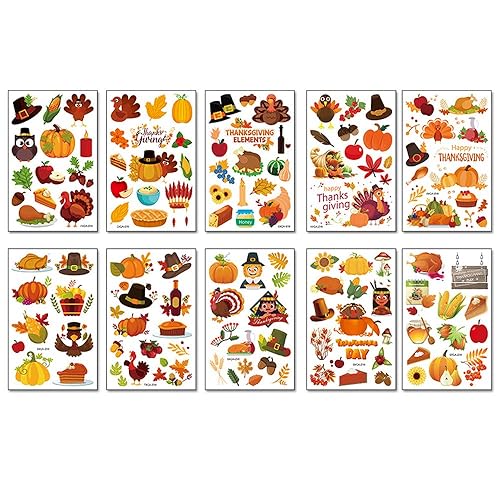 Halloween Temporary Tattoos Fake Spider Stickers Face Body Art Decals 10 Sheets Tattoo Stickers for Day of the Dead Party Decoration Accessories(Thanksgiving Day)