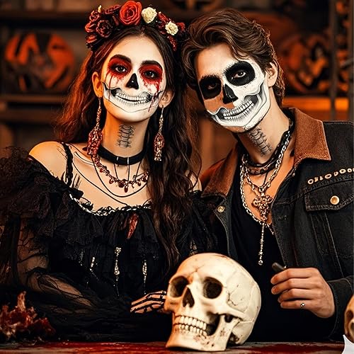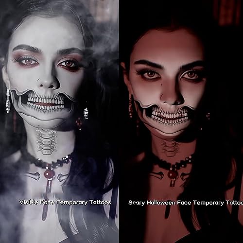 VERSATILE USE: Suitable for face and body decoration, these tattoos work great for adults and teens looking to create spooky Halloween costumes. Long lasting for days during your Halloween celebrations and parties
