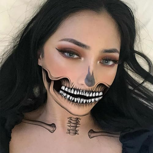 【Easy to Use】Our skeleton temporary face tattoos are easy to apply in just 10-20 seconds, you can easily apply the skeleton temporary face tattoos using just water, making it a quick and hassle-free process that takes less than a minute, can save so much time in halloween make up, skeleton tattoo can also be easily remove