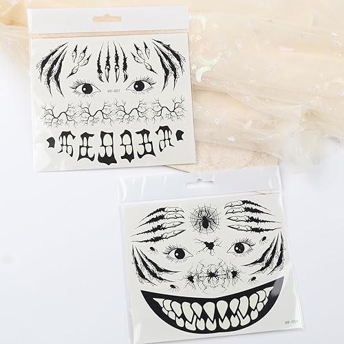 Halloween Face Tattoo Stickers: You will receive 2 different designs of Halloween face stickers, measuring approximately 6.3x1.5 inches, each one is terrifying and classic, making it the perfect face decoration for Halloween parties