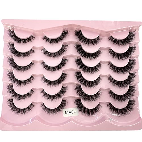 HBZGTLAD 12 pairs 3D Mink Lashes Natural False Eyelashes Dramatic Volume Fake Lashes Makeup Eyelash Extension Silk Eyelashes (MA-07)(MA-07)