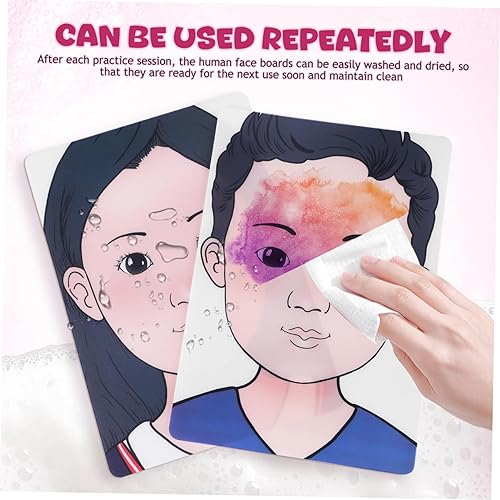 Easy to clean: after each practice session, the human face boards can be easily washed and dried, so that they are ready for the next use soon and maintain clean,makeup faces practice board,makeup painting practice