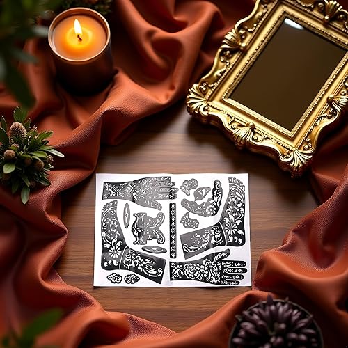 Henna Tattoo Kit Stencils,Temporary Reusable Unisex Tattoo Sets, Self-Adhesive Indian Arabian Temporary Tattoo Templates Kit for Body Paint