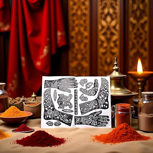 VERSATILE DESIGNS: Set includes multiple Indian and Arabian inspired temporary tattoo stencils for creative body art expression