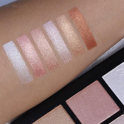 6-COLOR HIGHLIGHTER PALETTE: This professional highlighter palette features 6 richly pigmented shades suitable for face, body, and eye highlighting.The ultra-fine powder blends seamlessly for a natural, radiant glow.