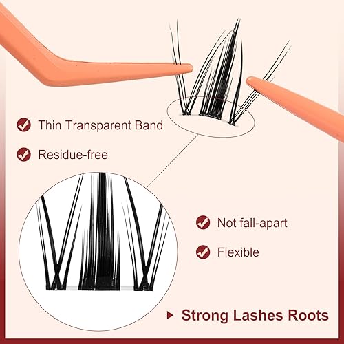 Invisible Band for More Comfort: the lashes cluster eyelash extensions set with its invisible bands ensures a seamless transition to your own eyelashes and a natural look. The long hold (7 days) underlines the quality. Wearing the eyelashes is more comfortable and protects the eyes. Even if you wear eyelash clusters all day, your eyes will not get tired.