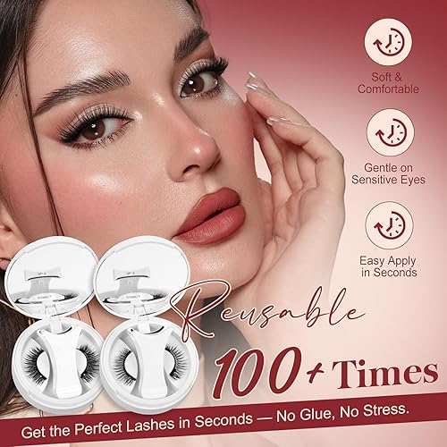 NO GLUE OR EYELINER REQUIRED: Our upgraded magnetic eyelashes technology provides a comfortable wearing experience for people with sensitive eyes. Say goodbye to the chaos of using glue to stick false eyelashes. The magnetic design ensures a secure fit without the need for lash glue, so you don't have to worry about your eyelashes falling off! The eyelashes magnetic lashes can be easily matched with any cosmetics without eyeliner, specially designed for lazy people!