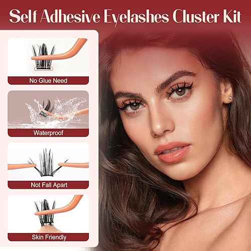 High-Quality Lash clusters Kit: Our self adhesive eyelashes is soft, comfortable and finely crafted. The glue is only 0.05mm. It not only looks beautiful, but also feels comfortable when worn. In addition, this pair of lashes is waterproof, so you don't have to worry about the eyelashes falling off.