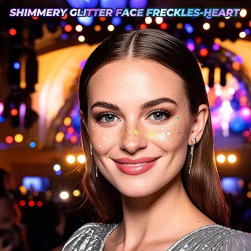 GLITTER FACE FRECKLES:Precisely Designed to Complement Facial Features and Enhance Appeal.Our temporary tattoos feature a contour-cut design that conforms to the natural shape of your face, including a nose bridge opening that ensures a secure fit without peeling. These shimmering facial embellishments effectively accentuate the charm and attractiveness of your facial appearance.