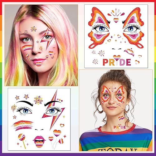 Safe & Waterproof & Long-lasting: Lesbian Pride Month Decorations face tattoos made of highest quality adhesive tattoo ink, safe and mild for human's skin, kids and adults can use with confidence! High quality body face art tattoos can last for several days, keep long time Lesbian Pride Look!