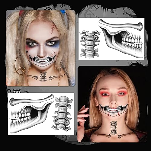 Comment on "HOWAF 4 PCS Skeleton Face Tattoo, Skeleton Face Sticker, Snake Collarbone, Skull Halloween Temporary Tattoos, Day Of The Dead Face Tattoo for Halloween Costume, Day Of The Dead Costume"