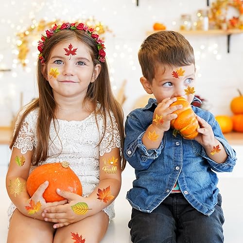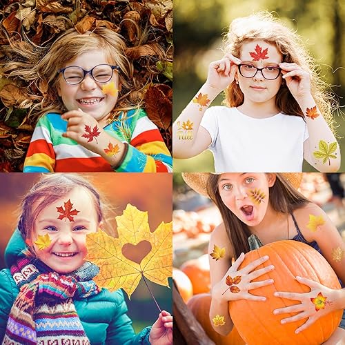 Wide Application: Glittery Leaves fake tattoos suitable for Thanksgiving day party, fall themed party, autumn themed party, and other give thanks events! Autumn tattoos stickers also can be applied to mugs, water bottles, phone cases, windows, crafts, scrapbook decorations, increase fall season atmosphere and welcome fall party vibe!