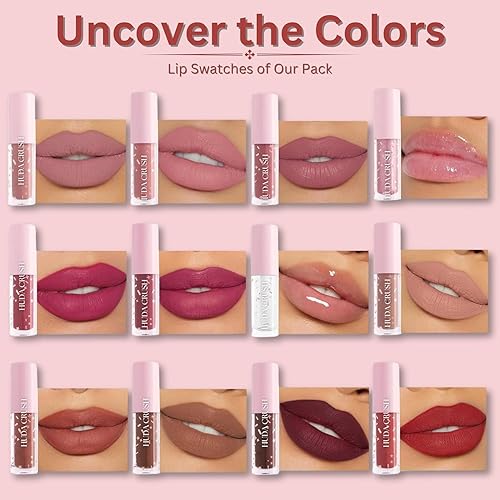 HUDACRUSH_12Pc Lipstick Combo Set, Lipstick for Dusky Skin Tone - Long Lasting Lipstick Waterproof, Unique Gifts for Women - Includes Red, Brown, Nude Lipstick - Perfect Liquid Lipstick Set