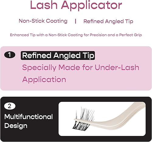 【REFINED ANGLED TIP】Specially made for under-lash application, the refined angled tip allows for precise placement and a perfect grip on lash clusters
